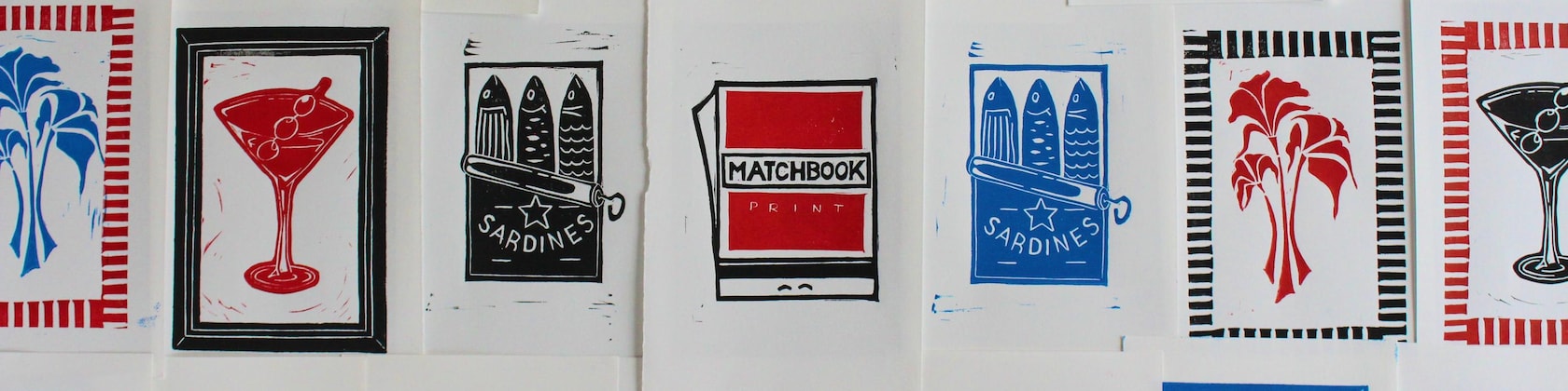 Sardines Linocut Block Print Artwork | 5x7 | Red, Blue or Black Color Options